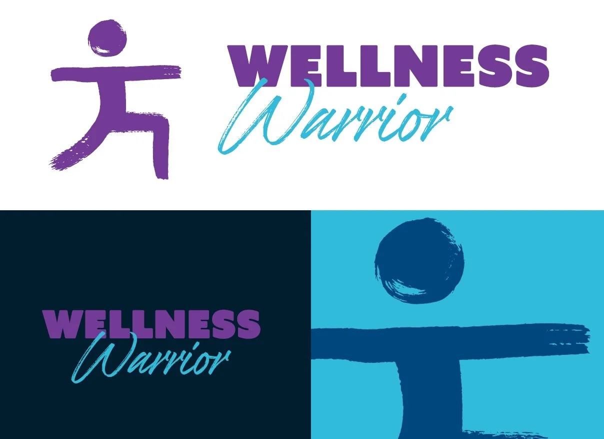 Wellness is a passion of mine outside of design. This logo was inspired by one of my favorite poses in yoga which is called Warrior 2. It is a strong pose and really strengthens the muscles in your legs. The direction I went with the logo as brush strokes came from the inspiration of Kanji and Japanese calligraphy. Because the name of the pose is warrior, it sparked the idea to name this program “Wellness Warrior”. The picture above shows my process in how I created the logo first, which was with ink and black acrylic paint. I sketched a simple icon with a pencil, and then went over it with the ink or the acrylic trying to find the best stroke of the brush. After creating a multitude of the same design, I took a picture of the designs I found most visually appealing, and then I put them into Photoshop to fix the contrast and lighting, and then I can transfer it into Illustrator to make the raster image a vector design.